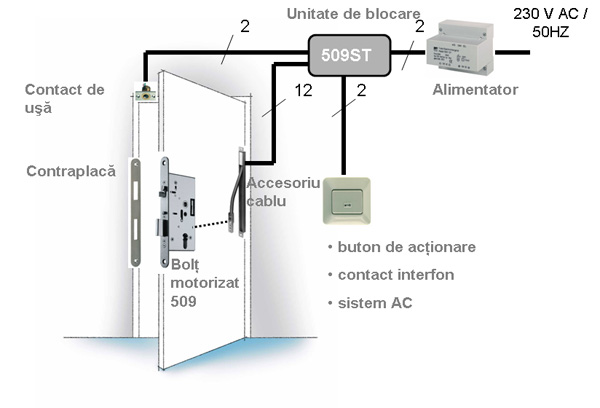 -în combinatie cu detector de fum, recomandat pentru usi de incendiu